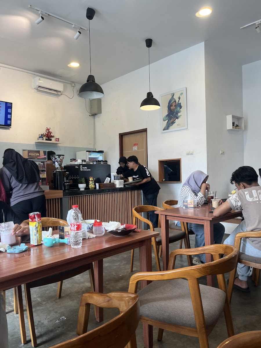 Edited: this place is change a lot, from the coffe bar and table, now is open for 24/7, tehy have a big and wide okace, the toulets also is more better than 1-2 years ago, also there have photo booth, more dishes and good ambience, almost waiters is newbie and young, plenty of parking but the parking lot is big, the snack’s is good than last time before they change this place to 24/7, thats a great scale up and i think its the biggest coffee shop in kudus, 9/10