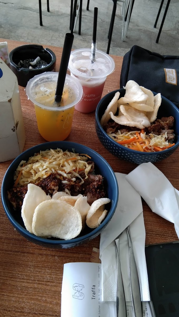 [Good and has many strong points, but need to improve in their foods taste] Kudus has relatively many coffee and eatery for a -not so- big city. So personally I think that the game is so competitive and every each coffee and eatery has to own their signature or strong points in one or more aspects. For traffa, I personally think they had it on it's marketing method, it's location, and it's menu varieties. It's menu could be classified as "high end in Kudus" (of course on the cafe standard. Not in restaurant standard). Their menu used premium ingredients and offer several menus you can rarely found on another cafe in Kudus. Their way of plating was also BOMB! I could say that was best plating in Kudus. One of my turn of is despite their menus using premium ingredients (I could tell it without being told beforehand), some menus have unproper taste like too salty, too oily, too sweet and even undercooked chicken. So the taste of several foods need to be improved. Another things is traffa's interior & exterior design is just so so and its really similar to "W" cafe that established before traffa.